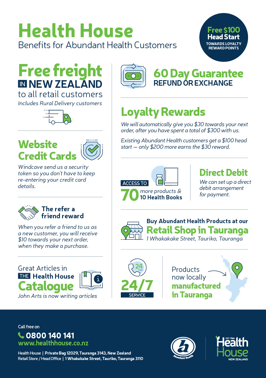 We are excited to share important news about the future of Abundant Health. From the 1st of April 2026 we will be combining with Health House, another family owned, local Tauranga company.